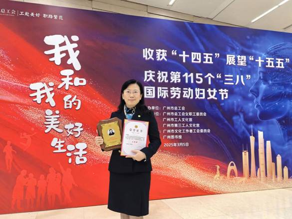 2025年3月5日,在第115個“三八”國際勞動?jì)D女節(jié)來臨之際,紡織公司黨委副書記、工會主席、女職委主任丘海瀾憑借在女職工工作中的卓越表現(xiàn),獲選為廣州市“女職工首席關(guān)愛官”。這一榮譽(yù)不僅是對丘海瀾同志個人工作的高度認(rèn)可,更是對紡織公司工會及女職工委員會長期致力于女職工關(guān)愛工作的充分肯定。